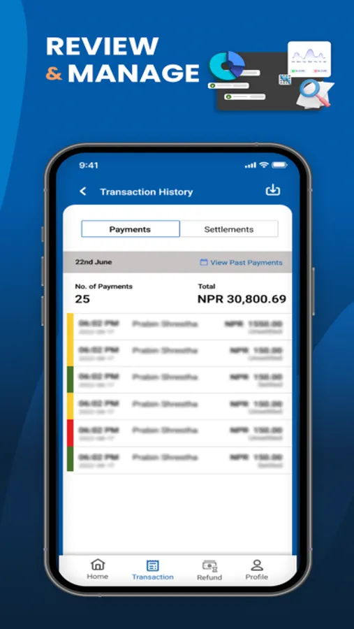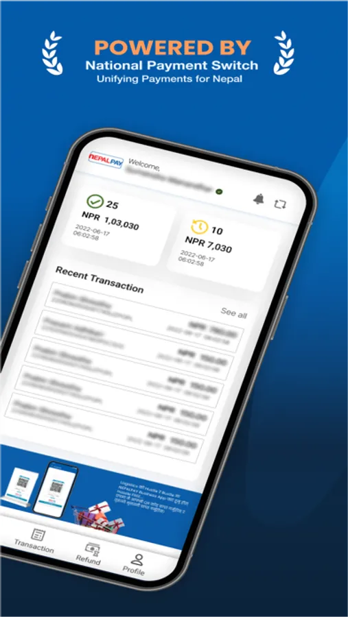 "NEPALPAY Business" - ultimate app for all our business partners around the corner in Making their Business Easy. With NEPALPAY Business, we aim to provide a seamless and efficient way to accept payments from customers through various channels, including mobile banking application, mobile wallets and other issuing applications, manage the transaction and track sales on day-to-day basis. The intuitive dashboard showcases the state of actual earnings and its user-friendly UI ensures easy and smooth usage of the app.
