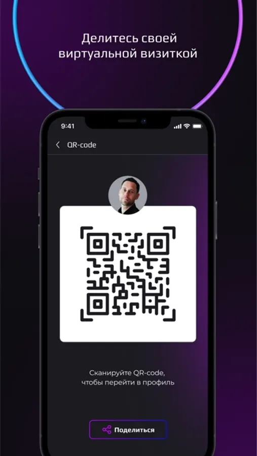 Визитка – с помощью виртуальной визитки делитесь своими контактами. Если у человека нет приложения, то он сможет открыть визитку на сайте