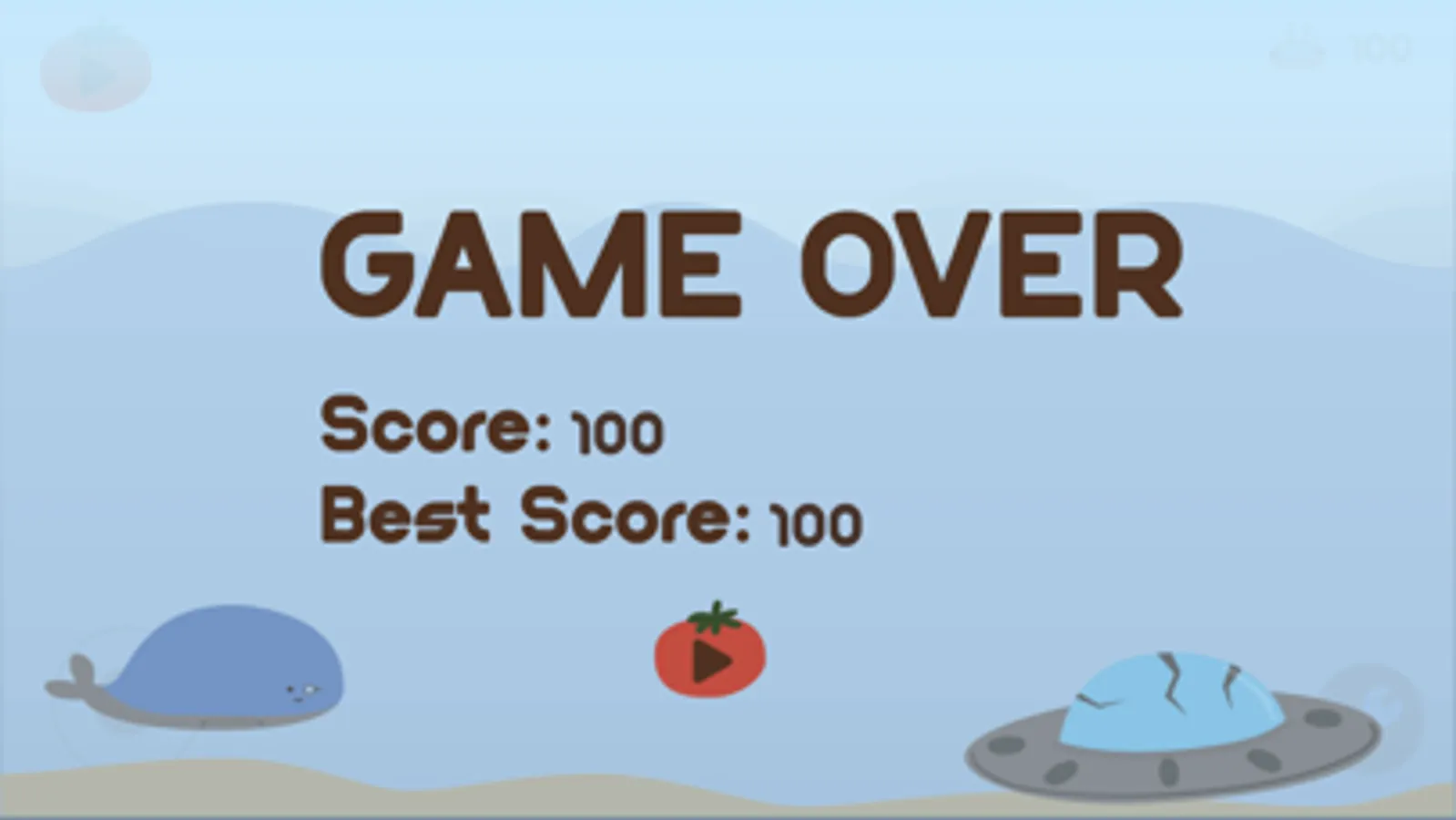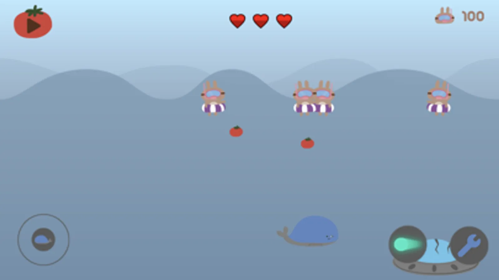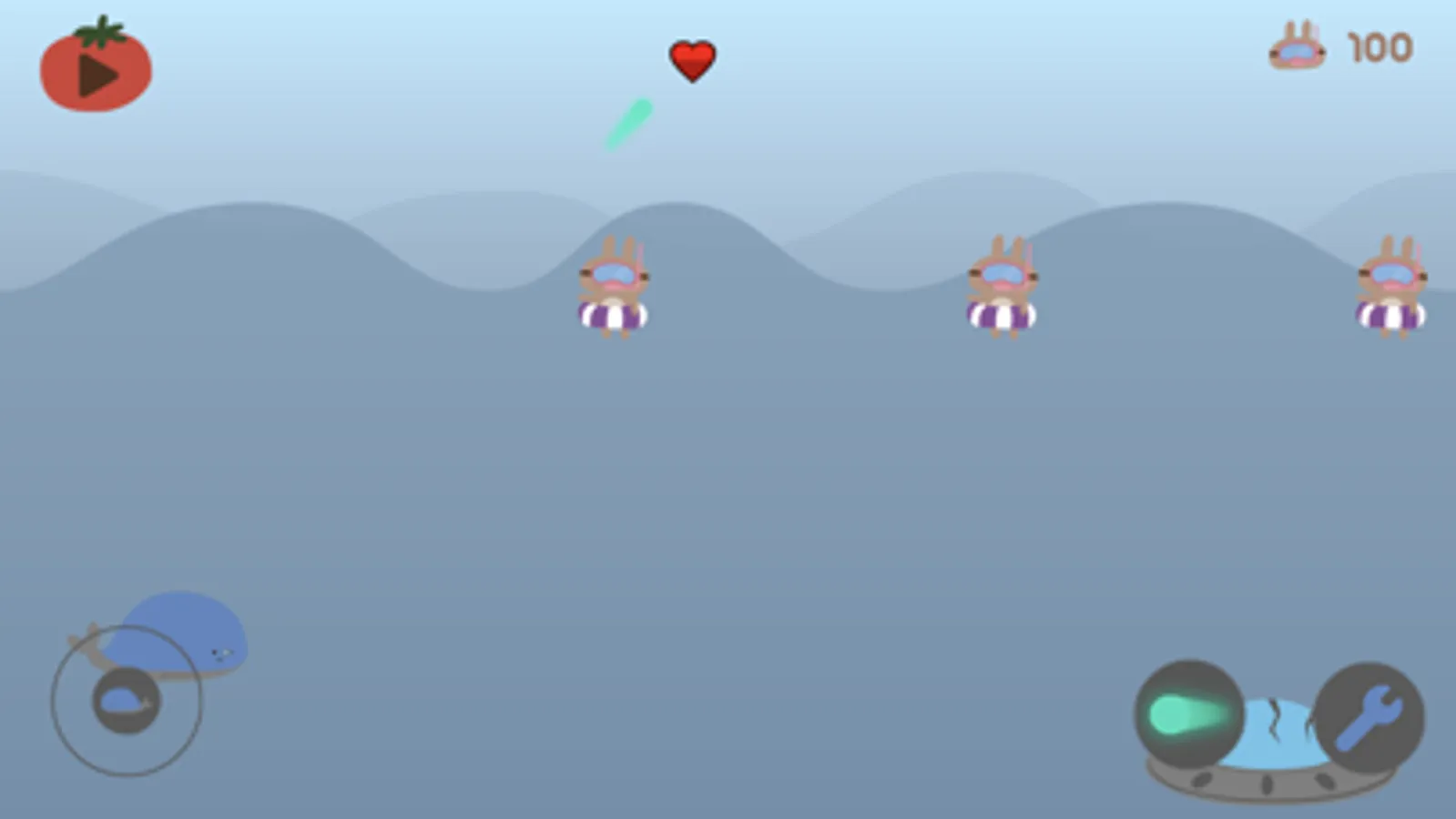 Bring the whale close to the ufo and repair the ufo so that the ufo flies back to the sky and shoots down the rabbits wearing buoys that are trying to approach to shoot you down.