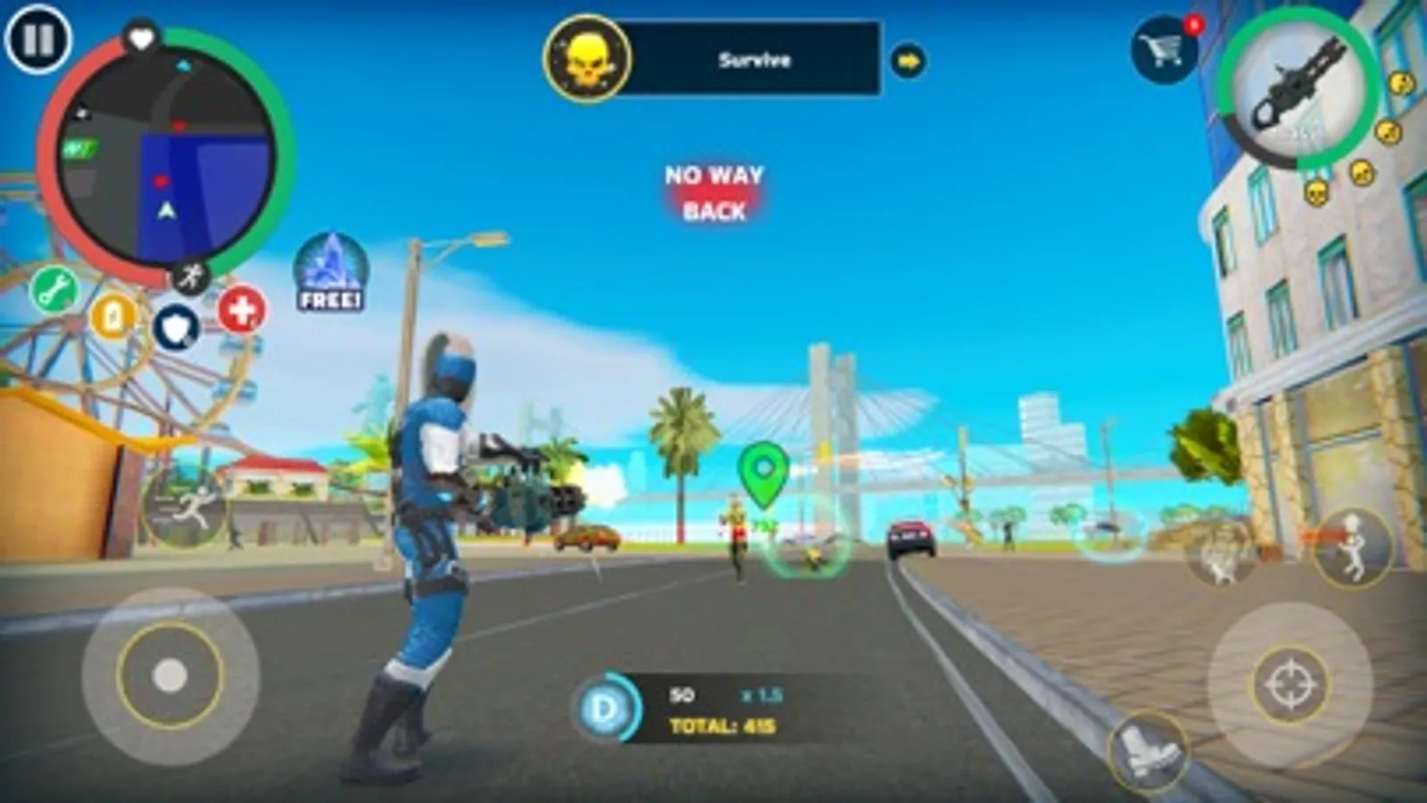 The super rope with no limits. Jump like a spider through the city and control the streets, full of crime.