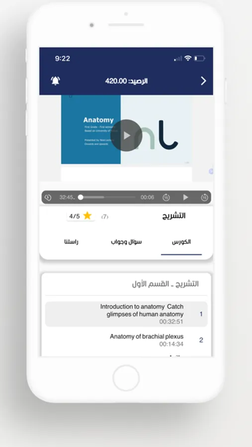 - قم بمشاهدة محاضراتك العلمية بشكل مستمر وسلس اذ يضع بين يديك هذا التطبيق جميع المحاضرات لمحتلف المواد بشكل فيديوات مسجلة من قبل أطباء مدرسين و محترفين اضافة للندوات العملية المباشرة وغيرها