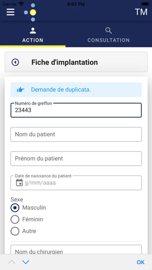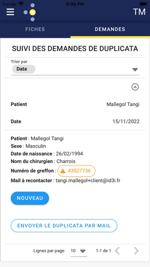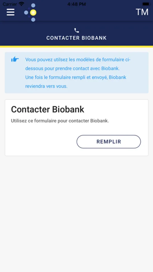 L'application Biobank vous permet d'accéder à tous vos données et fonctionnalité (soumission ou de demande de duplicata des fiches d'implantation, saisie des PMNs, accès aux fichiers partagés ...). Restez en contact avec Biobank.