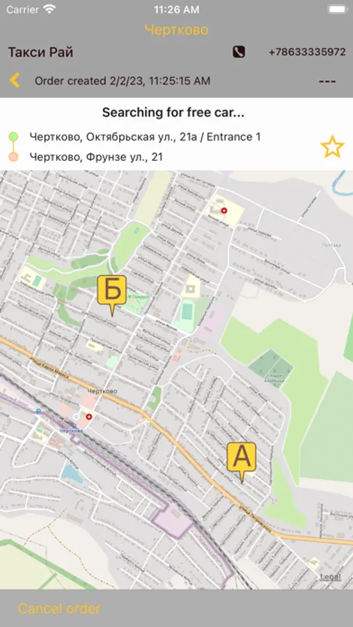 "Heaven" is taxi ordering service in Chertkovo town of Russia.