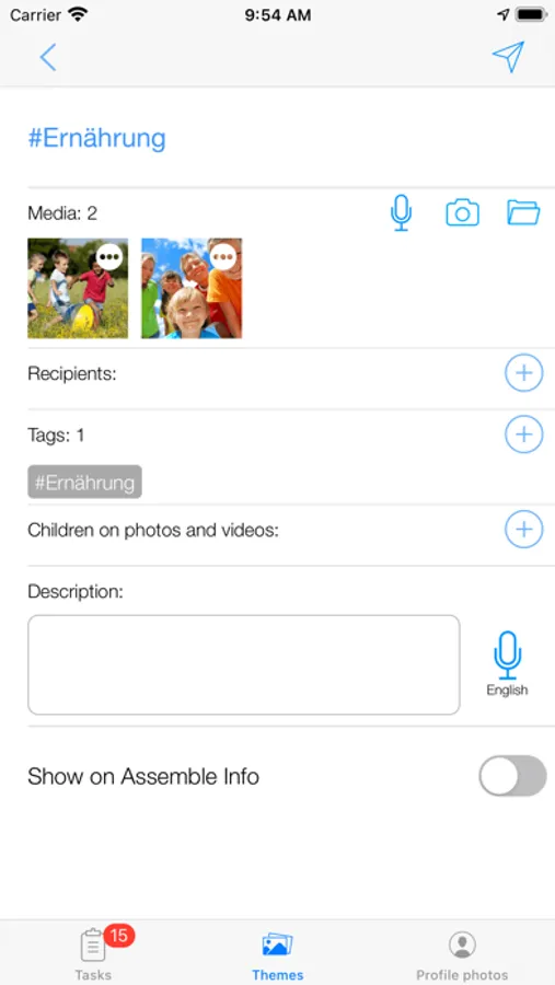 As a teacher with Dietzenbach Kita Foto you can document numerous situations and events about the children in Stadt Dietzenbach. The documentation can consist of images, videos, audio, text, tags, and recorded sound for photos. All documentation is collected in a documentation theme, which can be published to Stadt Dietzenbach for further processing, documentation and statistics.