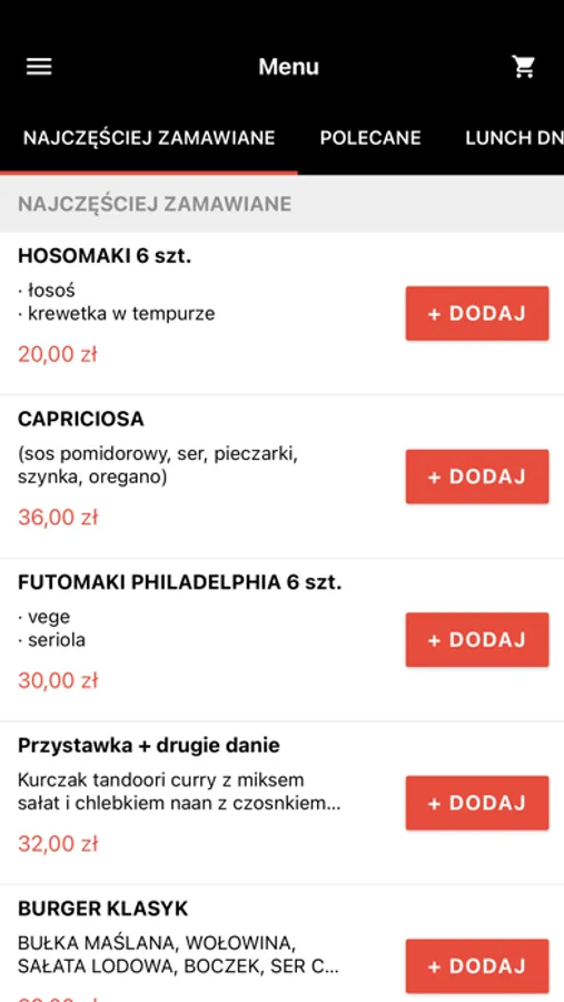 Oprócz zamawiania online aplikacja pozwala sprawdzić: