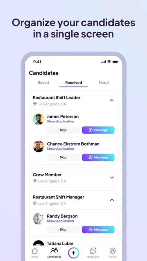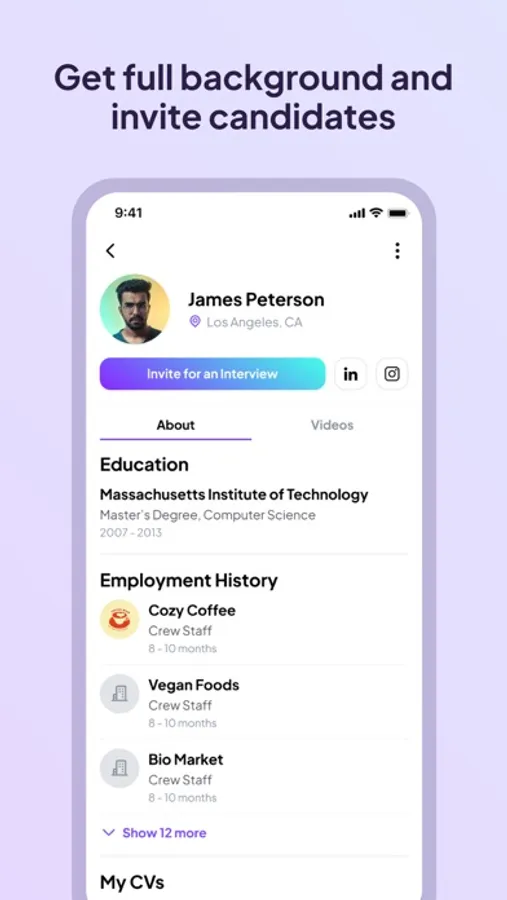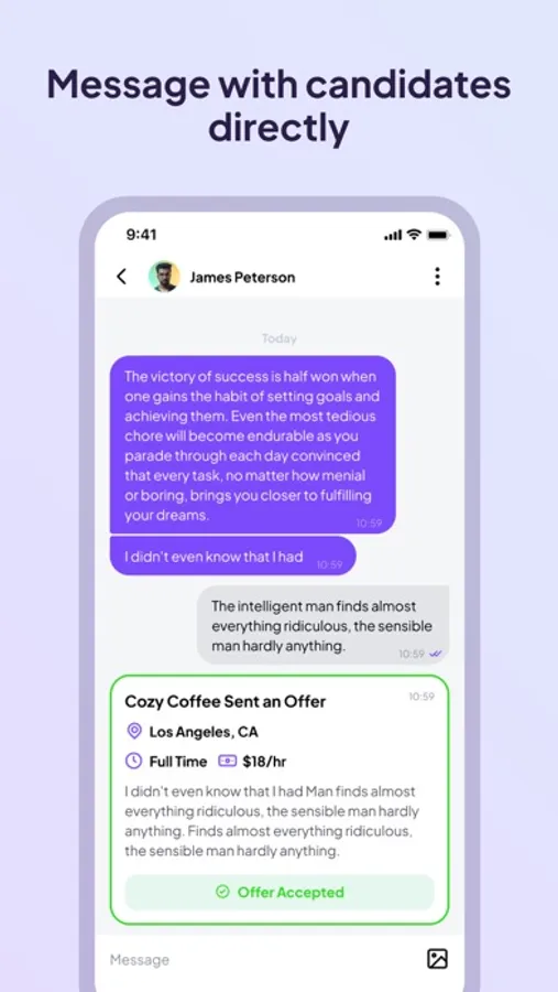 Receive customized job offers that you can accept or decline with just a few taps, and schedule interviews with potential employers easily.
