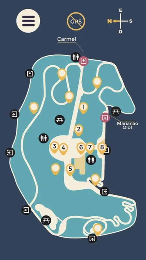 Mapas digitales: una vez seleccionado el perfil, el usuario accederá a un mapa digital personalizado, sin GPS, que le permitirá identificar dónde se encuentran los nueve recursos principales del parque, los seis complementarios, los tres servicios, los nueve accesos, las tres zonas de pícnic y los tres espacios de calma. Los mapas están adaptados para personas con diversidad intelectual, también pueden incluir una ruta accesible para personas con movilidad reducida o bien colores adaptados para personas con determinadas necesidades visuales.