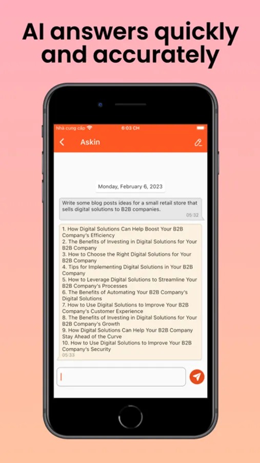 Our app features categories and sample prompts in Sales, Marketing, Recruitment, HR, Startup, Real Estate and more, providing you with tailored answers for your specific needs. The modern and intuitive UX/UI design makes Askin easy to use, with handy features like simple text copy, image download, chat history,...