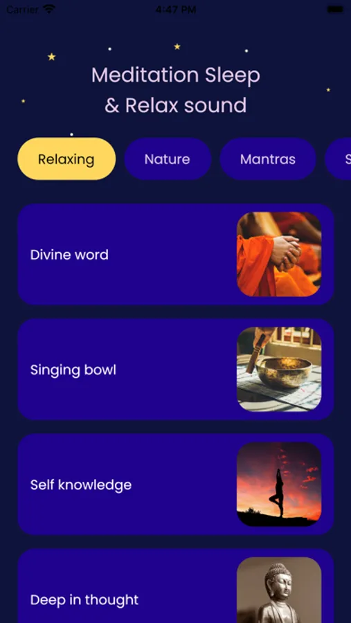 A meditation sleep sound app is an application designed to help users relax, meditate, and fall asleep. The app typically features a variety of sounds and guided meditations, which can be customized based on the user's preferences. Some common sounds include white noise, nature sounds (e.g. rain, ocean waves), and ambient music. The guided meditations can range from guided breathing exercises to full-body relaxation scripts. The goal of my apps is to help users improve their sleep quality and create a peaceful sleep environment.