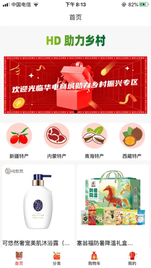 HD助力乡村是一款助力乡村振兴的移动购物 APP,致力于为消费者提供特产商品,满足人们生活中的不同需求。拥有搜索和浏览商品、加入购物车、下单支付、订单查询、物流查询、售后服务、收藏商品,分享商品等功能
