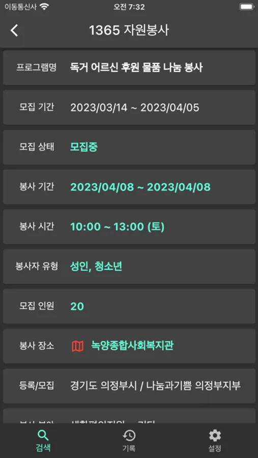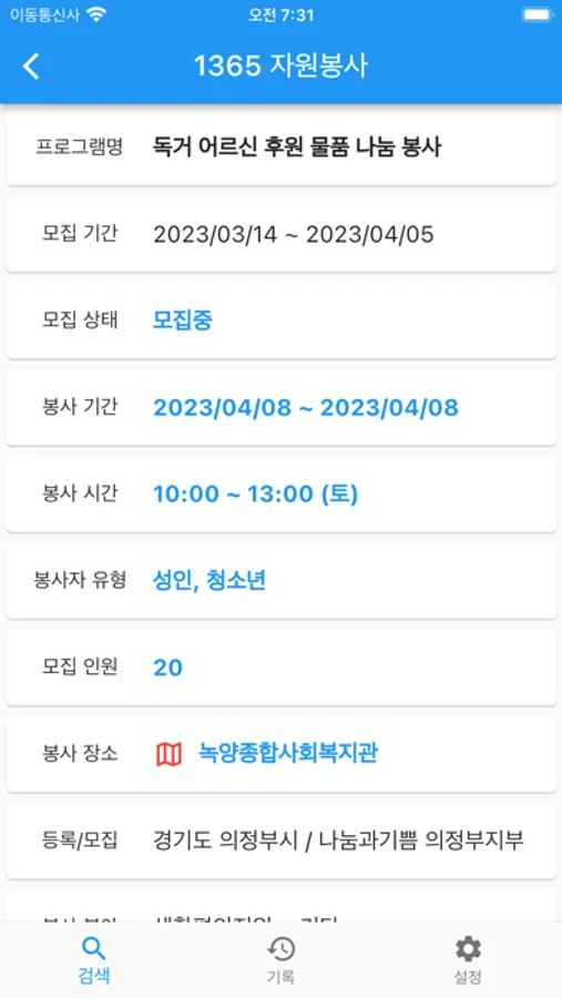 - 상세 정보 및 봉사 신청을 위한 1365 사이트 링크