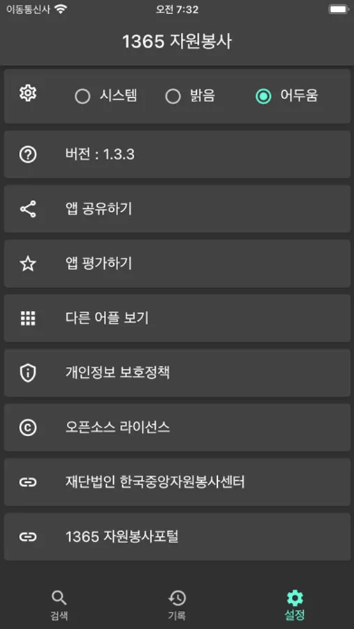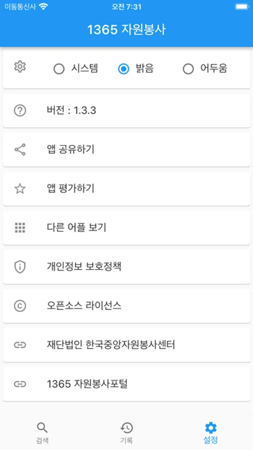 * 행정안전부 API 사용 : 행정안전부에서 제공하는 봉사참여정보서비스를 활용하여 앱을 개발하였습니다.