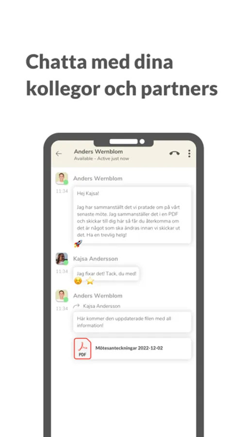 • Chatt – knyt ihop teamet och chatta direkt med kollegor eller kunder