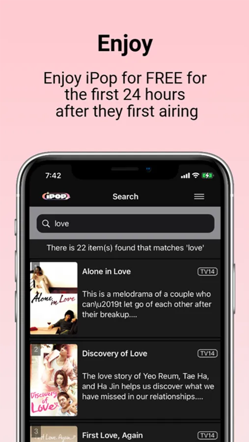 - Enjoy an exclusive look at on-air K-Dramas available on iPop for FREE for the first 24 hours after they first airing!