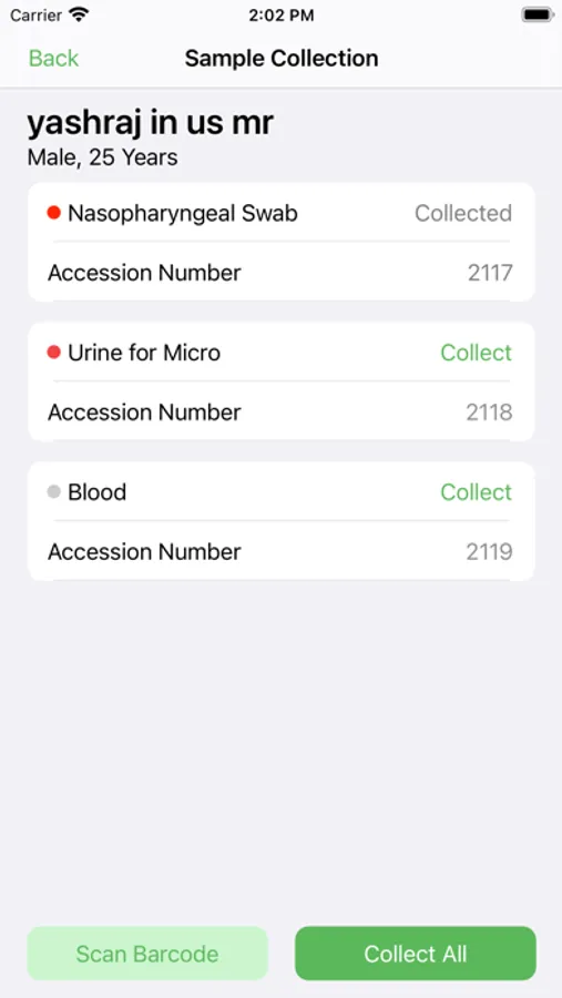 • Mark the samples collected directly from the app with support for pre-printed barcodes as well