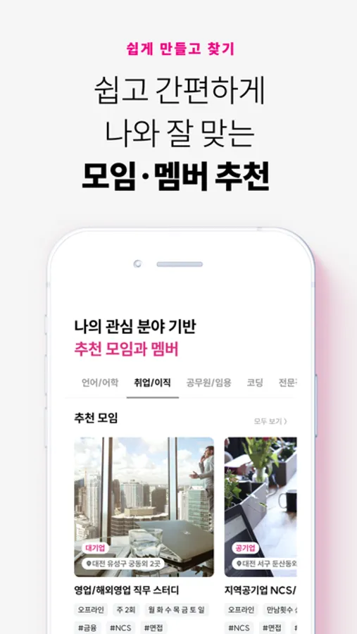 · 분야별 모임을 쉽게 찾아볼 수 있어요.