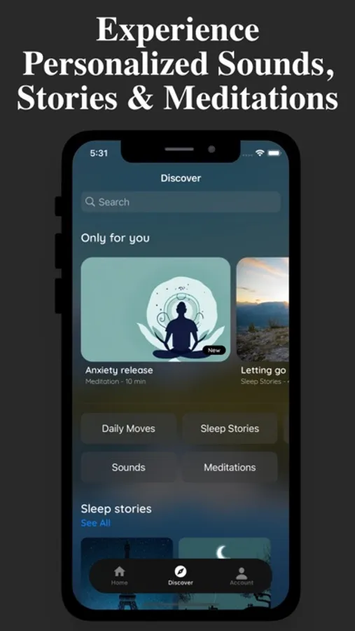 Feel the serenity of sounds that resonate with your soul, immerse yourself in captivating stories that ignite your imagination, and find meditations that effortlessly calm your mind. With SleepAI's AI-based recommendations, discover the perfect blend of elements that create your ideal sleep sanctuary.