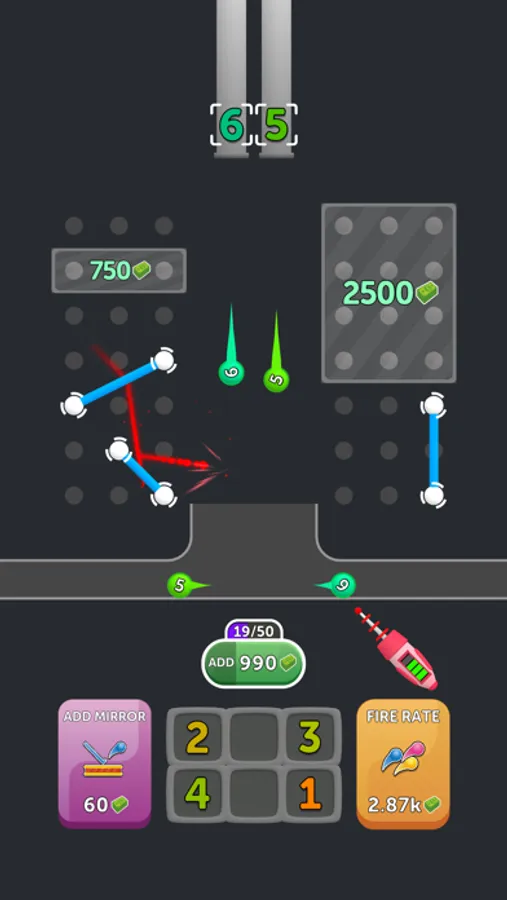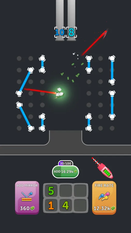Place the reflectors wisely and generate income by hitting each ball in Laser and Ball. What is the most money-making cycle you can set up?