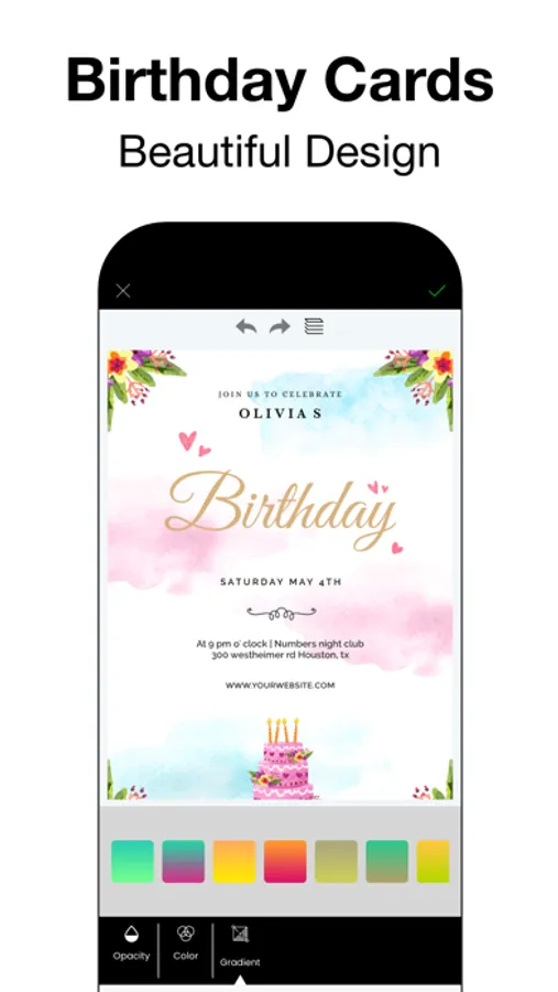 Add your photo or birthday’s person photo on invitation card that help you to decorate your invitation card more, You can share invitation online using our app or you can print it using wireless printer and share hard copy to your relatives also.