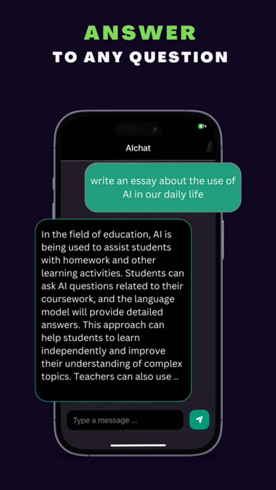 AIChat is a versatile tool that can answer a wide range of queries, from simple factual questions to more complex ones. Plus, our app is continuously learning and evolving, becoming more accurate with each interaction.
