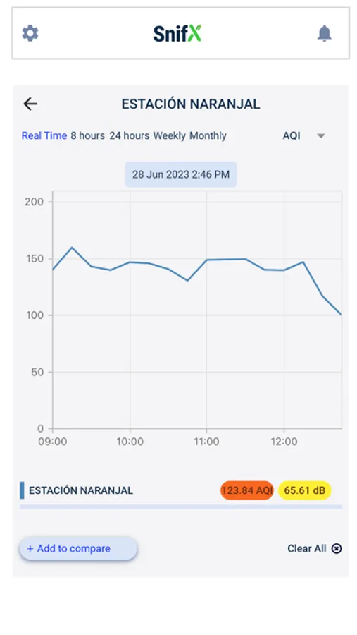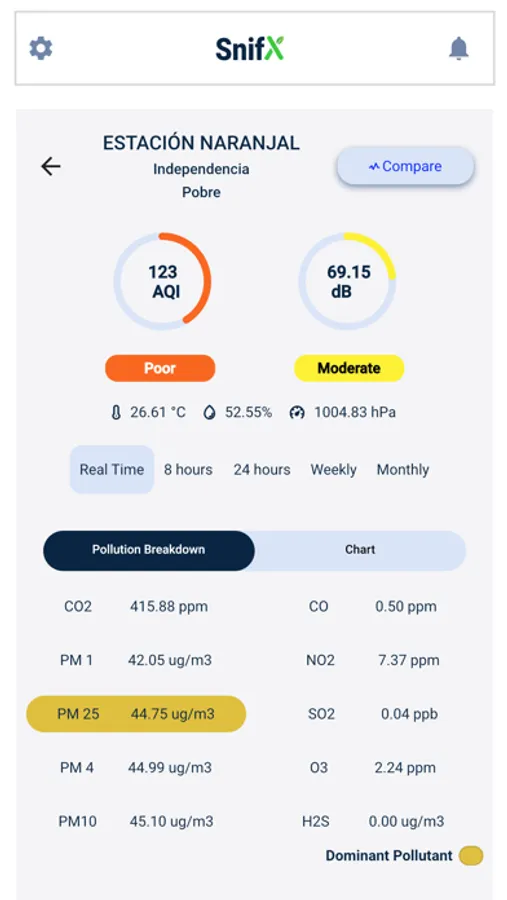 Una de las características que destacan de SnifX es su diseño intuitivo, lo que hace que sea fácil de usar para cualquiera, independientemente de su nivel de experiencia técnica. También proporciona graficas detalladas que te ayudarán a rastrear el historial de la calidad del aire de tu localización.