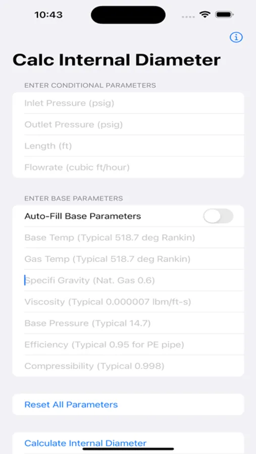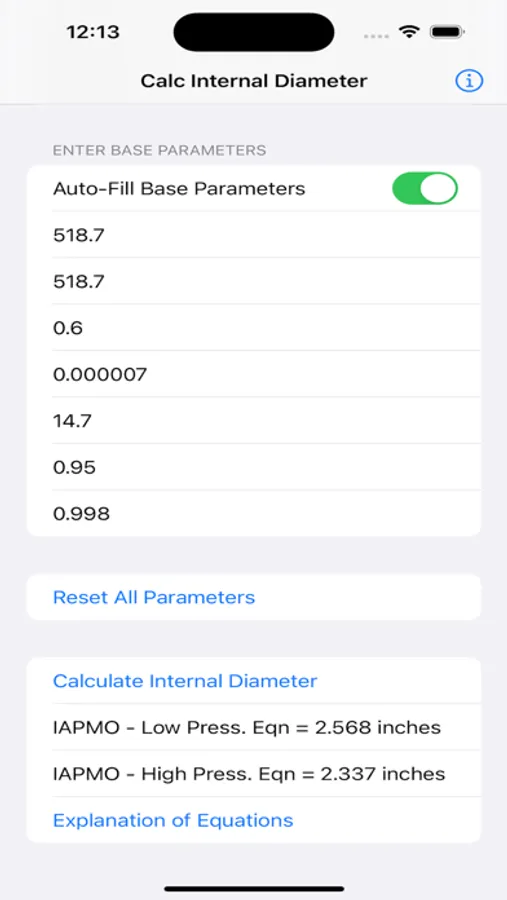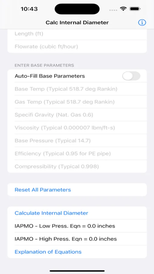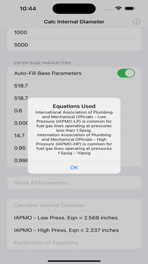 The Gas Line Sizer app was created for a single purpose, to use basic information such as inlet pressure, outlet pressure and gas load to calculate the internal diameter needed. It uses the Low Pressure and High Pressure Equations provided by the International Association of Plumbing and Mechanical Officials to solve for diameter.
