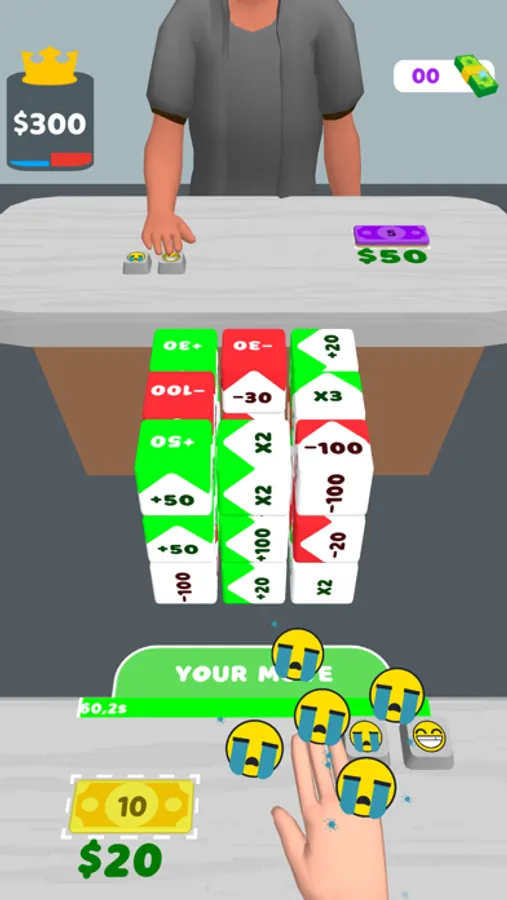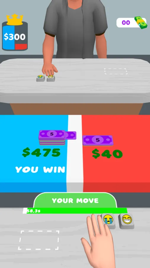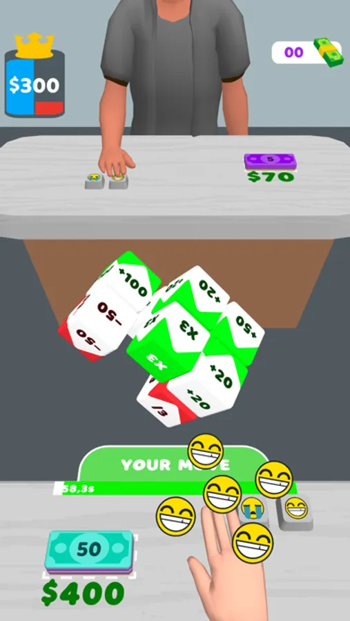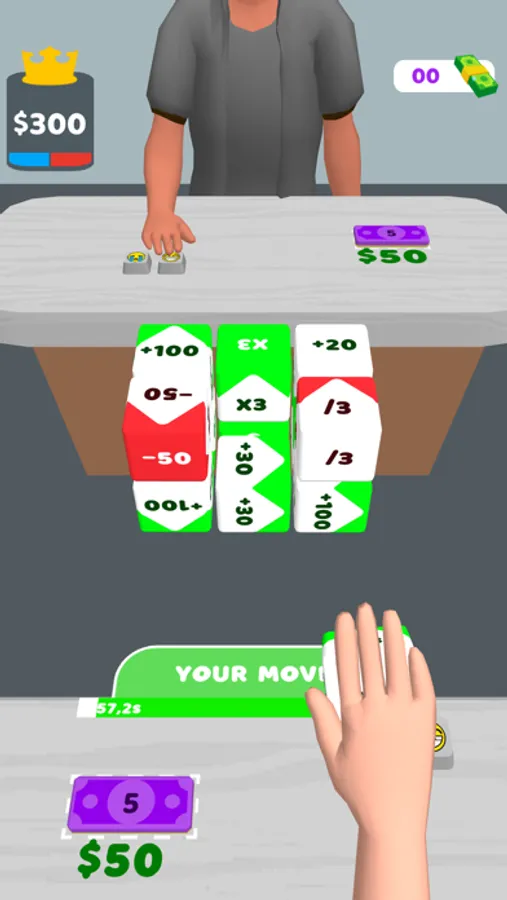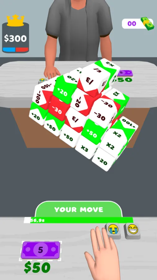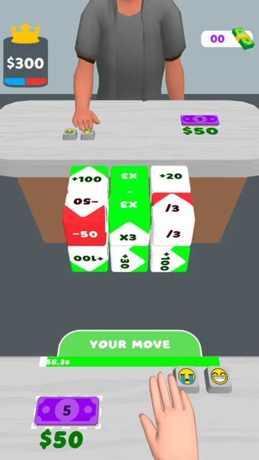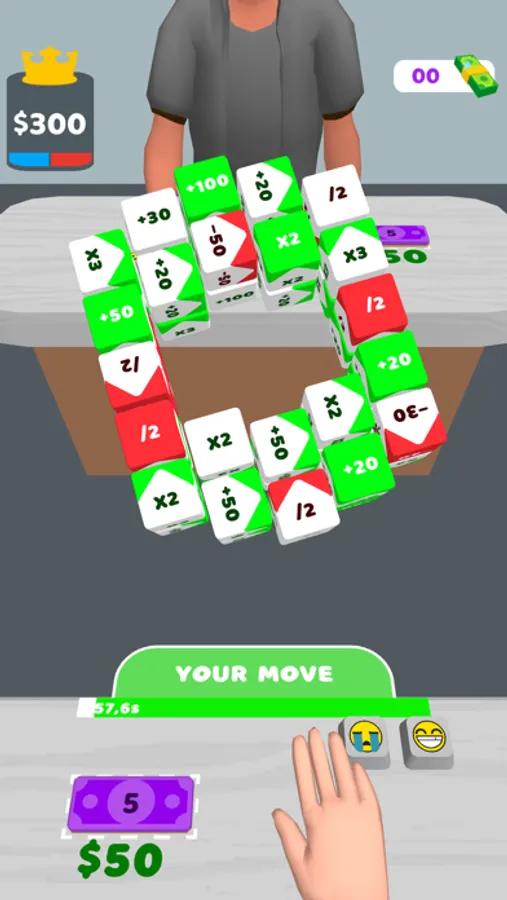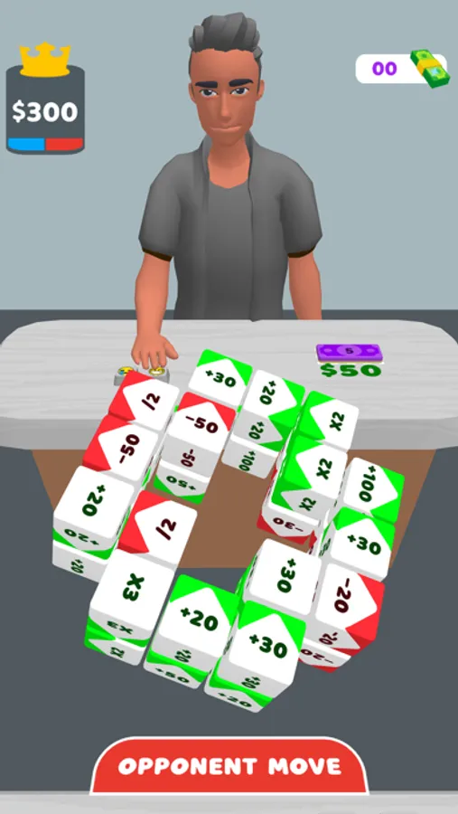 Make your best move by paying attention to the direction and values of the cubes. Reach the target before your opponent, add his money to your money! Don't forget about red cubes, you can reduce your opponent money by using them, but so can do your opponent so be careful.
