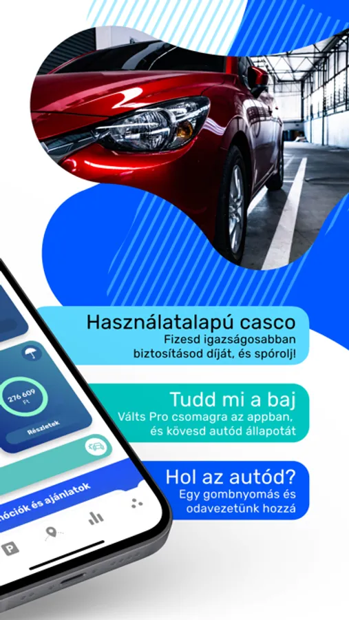 • Ahhoz, hogy jól vezess, nem árt néha egy kis visszajelzés. Az alkalmazásban segítünk visszanézni útjaidat, és megmutatjuk milyen hibákat vétettél. Pontozzuk útjaidat, így összemérheted biztonságos vezetési stílusod ismerőseiddel.