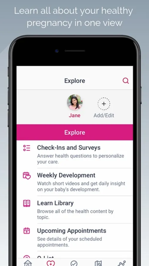 This app is designed to help keep you and your baby healthy throughout pregnancy and beyond.