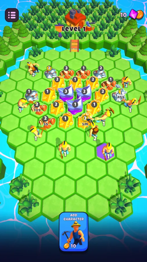 Miners become greedy and begin digging deep into the earth to extract valuable copper, silver, gold, and diamond ores. As miners progress through the land, you can merge your miners to upgrade their levels and increase their mining speed and efficiency. The goal is to make as much money as possible from the mined ores, which can be used to purchase even more powerful equipment and tools.