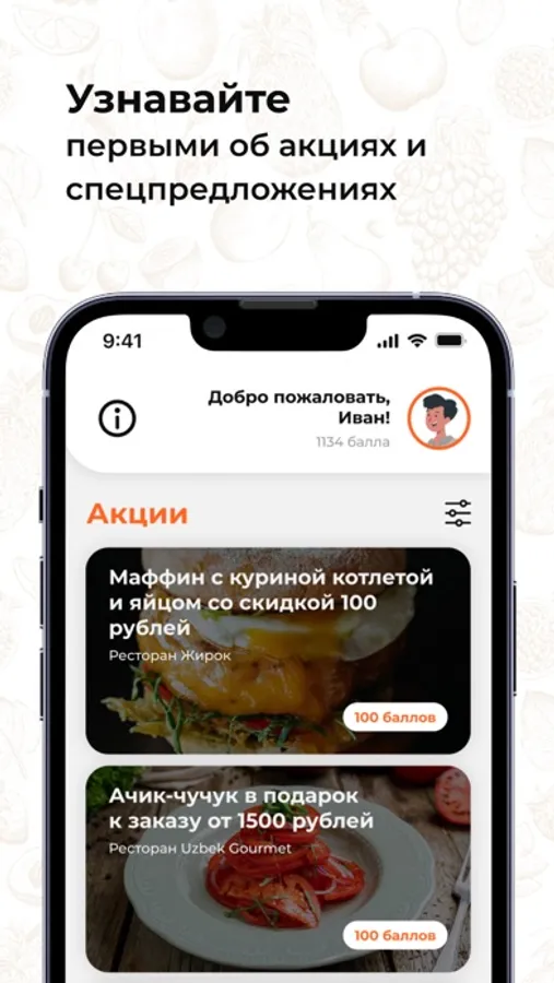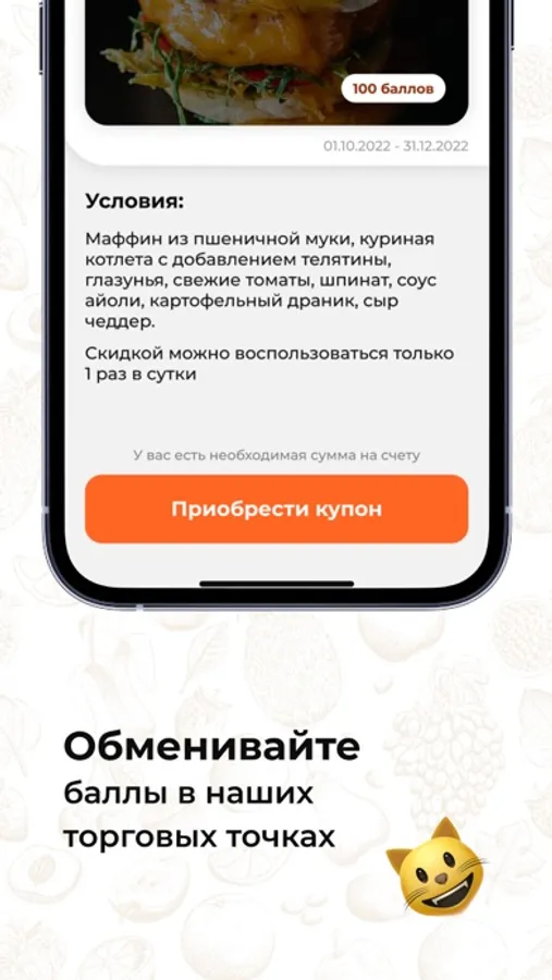 Мобильное приложение дает возможность накапливать баллы в размере до 10% от суммы покупки абсолютно во всех ресторанах, корнерах и торговых лавках рынка.