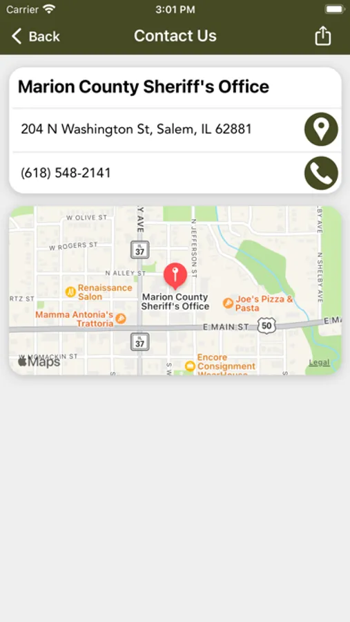 The Marion County Sheriff’s Office mobile application is an interactive app developed to help improve communication with area residents. The Marion County IL Sheriff’s app allows residents to connect with the Marion County Sheriff’s Office by reporting crimes, submitting tips, and other interactive features, as well as provides the community the latest public safety news and information. The app is another public outreach effort developed by the Marion County IL Sheriff’s Office to improve communication with county residents and visitors. This app is not intended to be used to report emergency situations. Please call 911 in an emergency.
