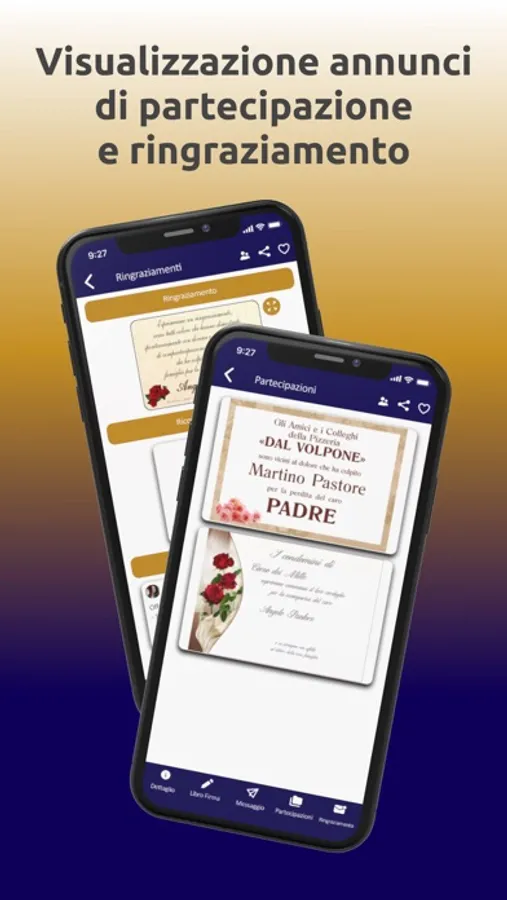 La nostra app è affidabile e seria, vi accompagna virtualmente nel momento del cordoglio, proponendovi una vasta gamma di servizi tra i quali anche una sezione dedicata dove è possibile prendere visione di tutti i nostri partners e mettervi in contatto con loro direttamente dal tuo smartphone e tablet!