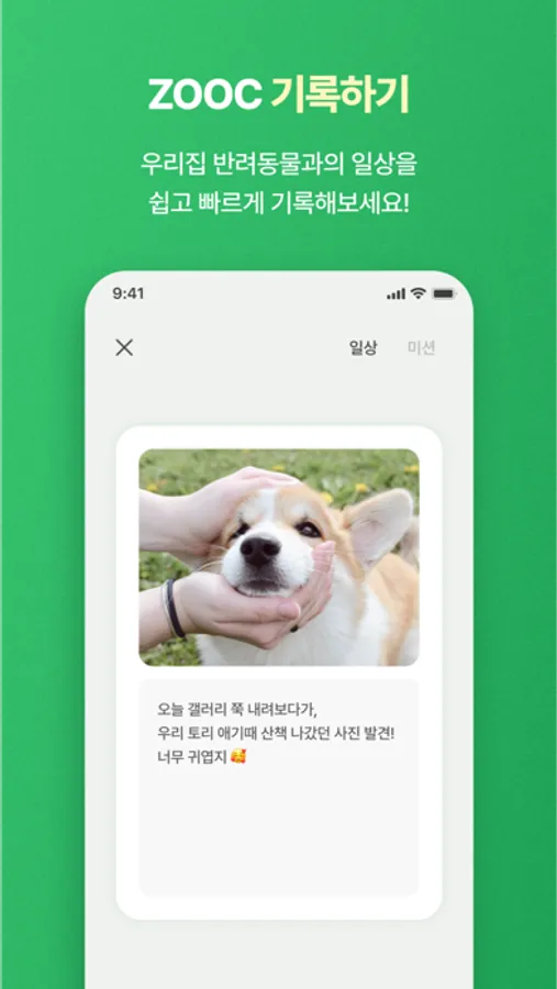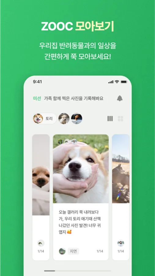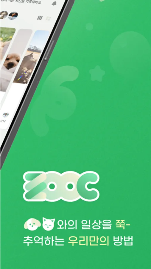 - 반려동물을 간직하고 싶은 순간을 ZOOC에 기록해보세요.