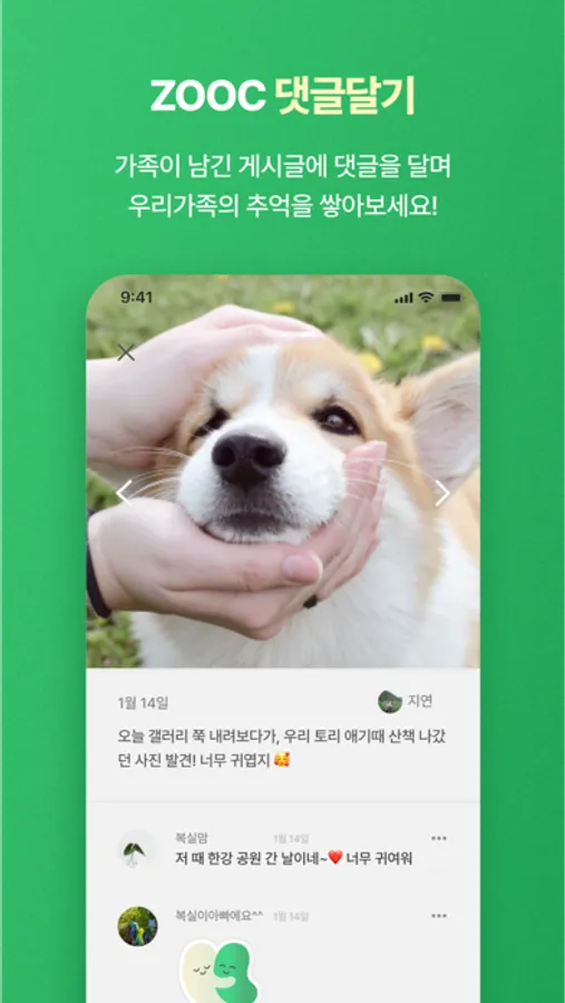 - 가족이 올린 게시글에 댓글을 달며 추억을 회상해보세요.