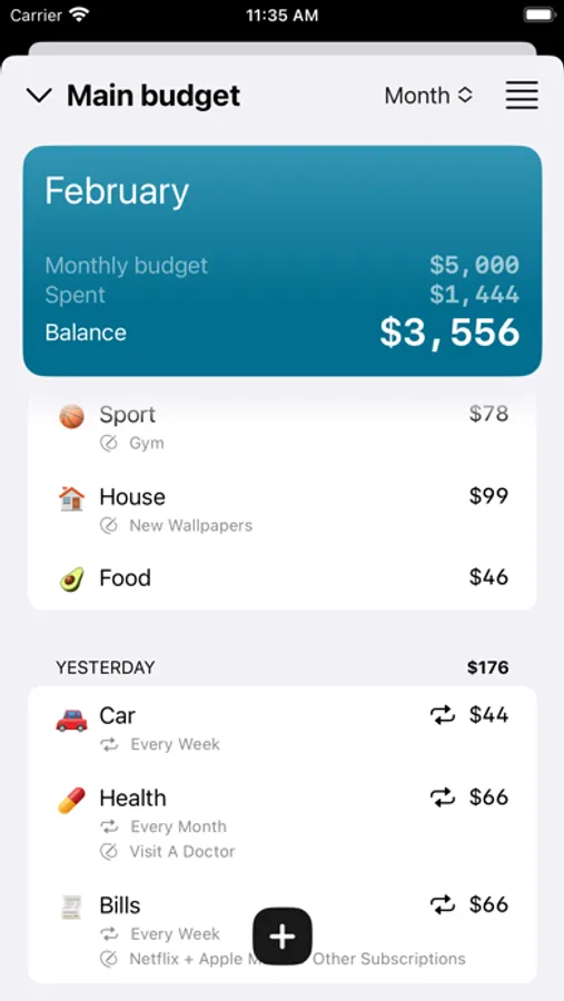- keep track of recurring expenses such as subscriptions, bills, and other monthly payments.