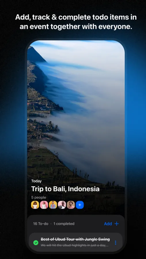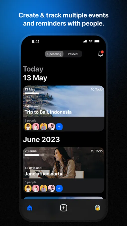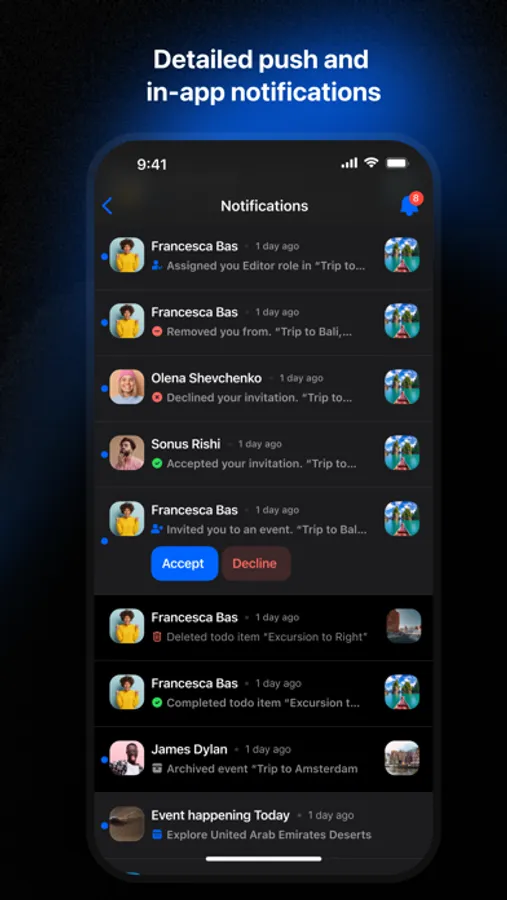▸ Detailed push and in-app notifications for event reminders, countdown and to-dos items status