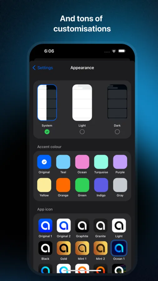 ▸ Expansive app customisations and personalisation (Change app colour, app icons - over 20 premium app icons available and more)