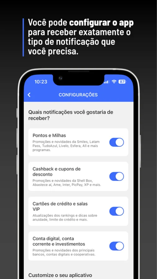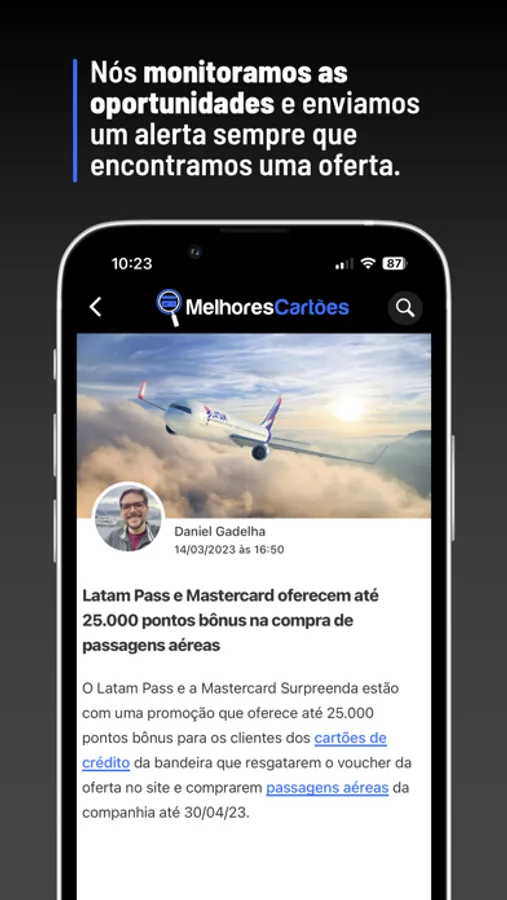 Por que gastar milhares de reais assinando grupos de Whatsapp ou cursos de milhas? Aqui você receberá gratuitamente as melhores promoções e oportunidades sem pagar nem um centavo por isso! Seja o primeiro a saber e aproveite as melhores ofertas! Nosso aplicativo te envia uma notificação sempre que publicarmos algo novo - e você pode ajustar para receber alertas apenas do que te interessa!