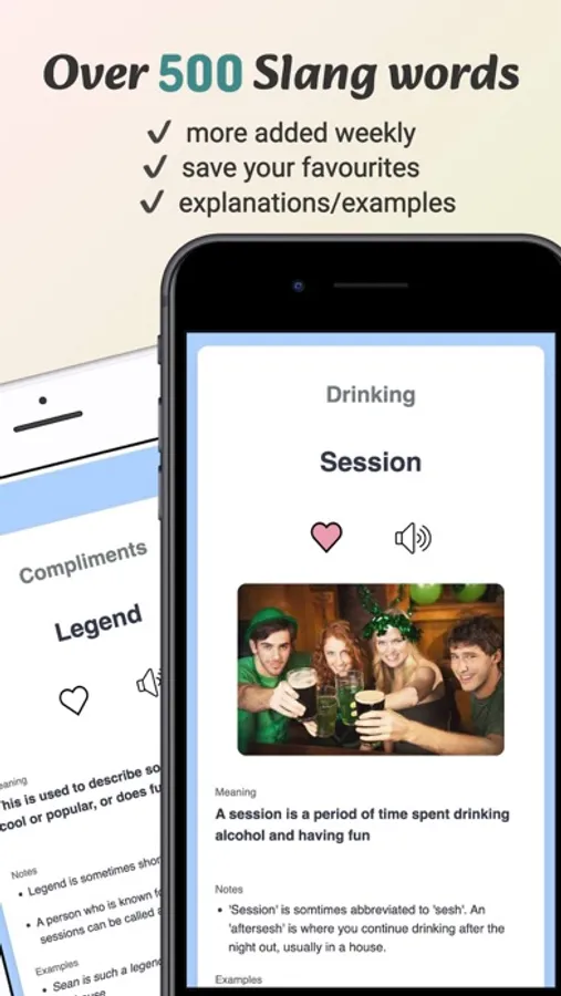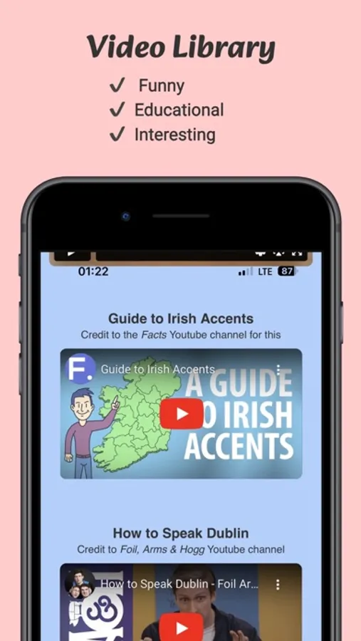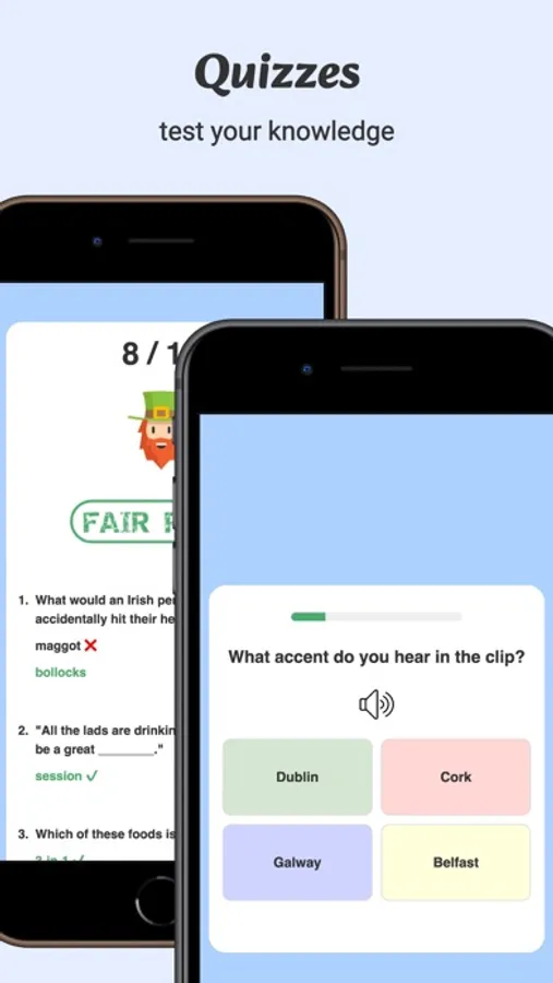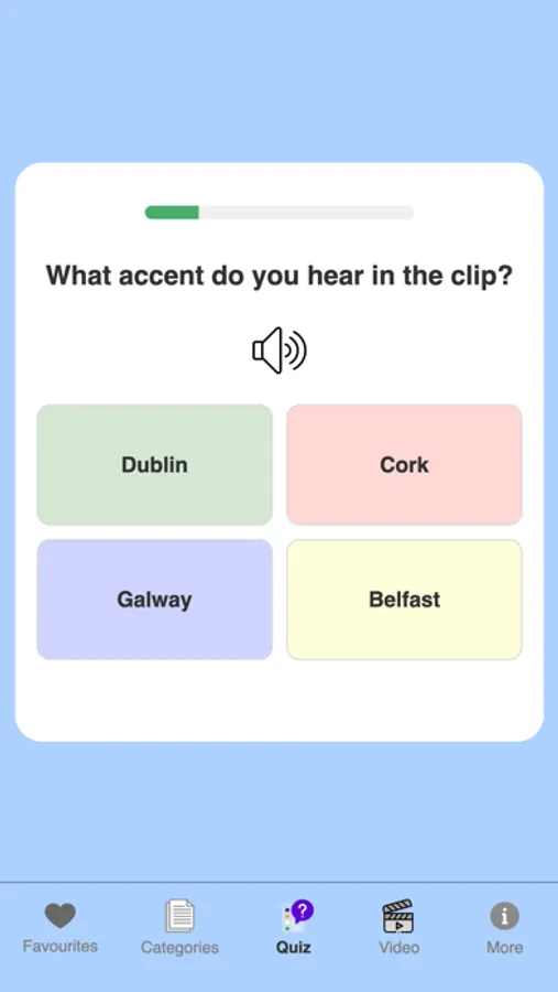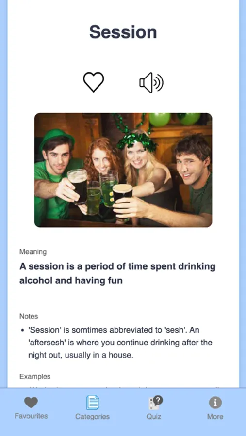 • Add phrases to your favourites, and hear how they sound with an Irish accent