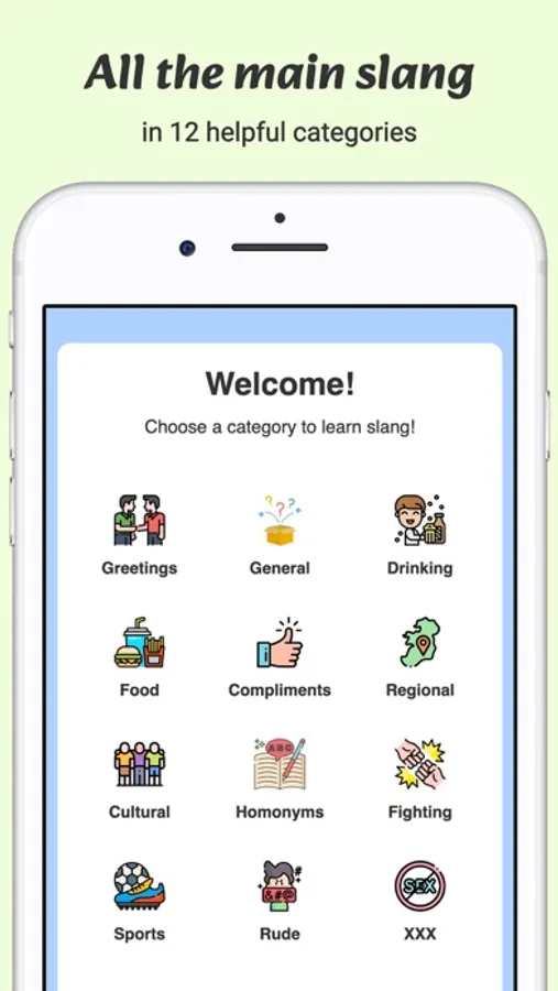 I have included over 500 of the most common slang phrases that are used every day in this country, and put them into useful categories like 'Greetings', 'Rude', 'Drinking', etc.