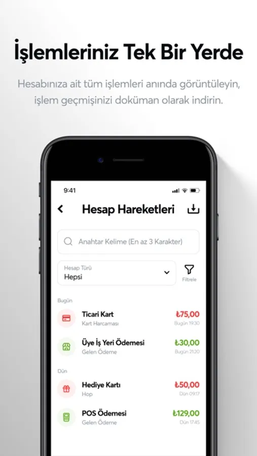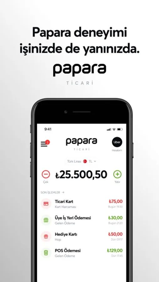 -Tüm POS işlemlerinizi Papara Ticari mobil uygulamasından takip edin.
