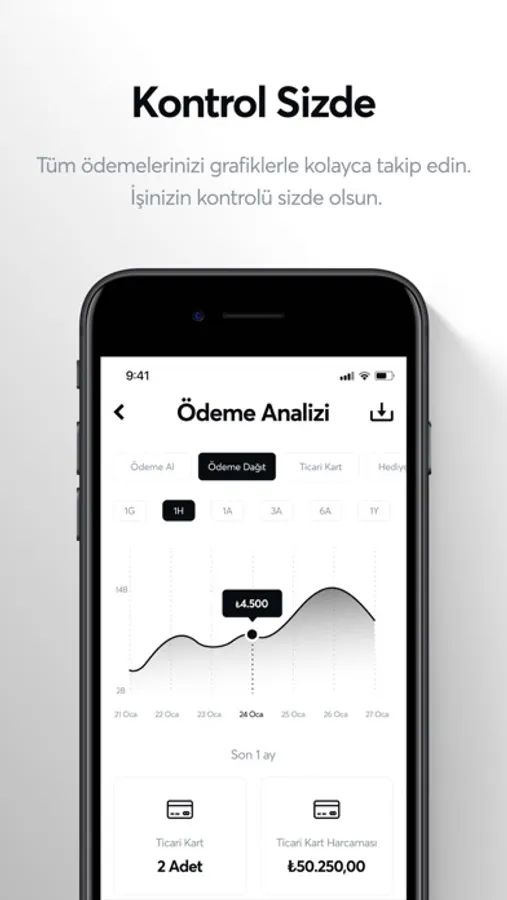 İşyerinize ait harcamaları Ticari Kart ile yapın, tüm ödemelerinizi tek bir yerden takip edin.
