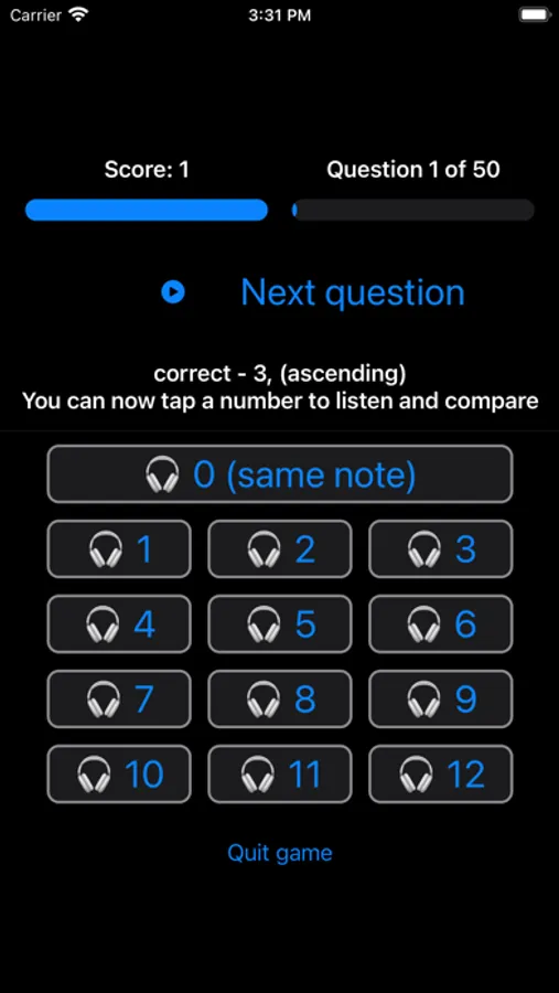 Combine fun and education with Intervals! This unique app challenges you to identify the intervals between two notes played, measured in semitones. Whether you're an aspiring musician, a music student, or simply looking to improve your musical skills, Intervals is the perfect tool for you. With its interactive gameplay and engaging design, you'll find yourself absorbed in this musical journey in no time.
