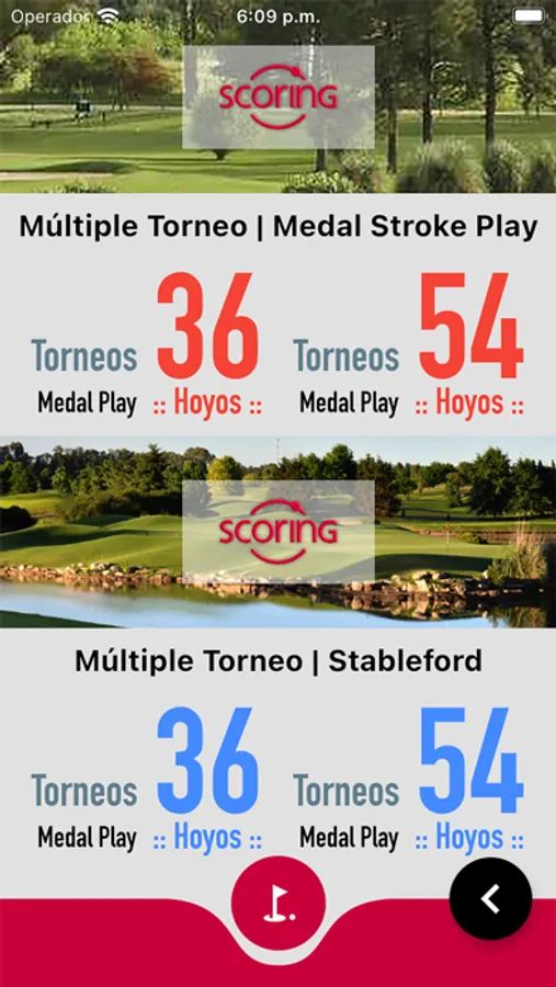 Opciones Medal - Stroke Play y Stableford, por 36 hoyos o 54 hoyos.