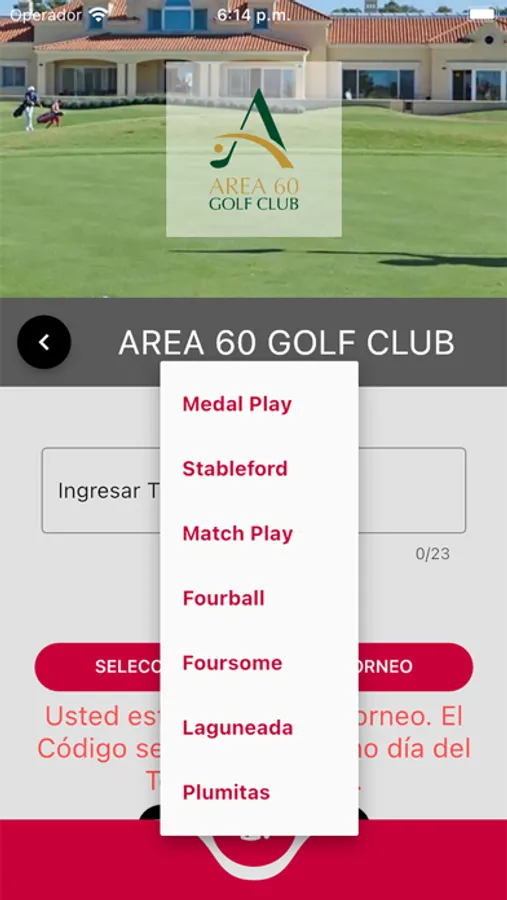 Seleccionara un club, un compañero de juego y sus respectivos Tees de salidas.
