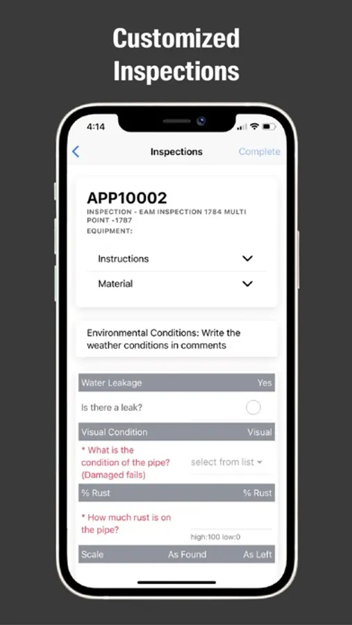 -Time entries, failure codes, meter readings, and comments can be captured to further document the work and provide rich analytical data for continuous improvement and root cause analysis initiatives.