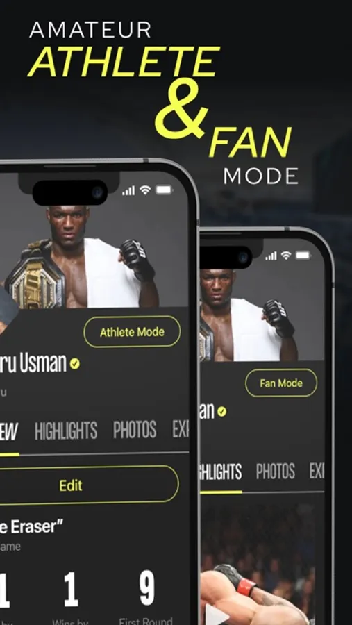 Your profile has two modes, the fan mode, which is by default, and the athlete mode, for sport fans that are also athletes and want to become a professional athlete. Each mode has specific tools to help you create unique content.