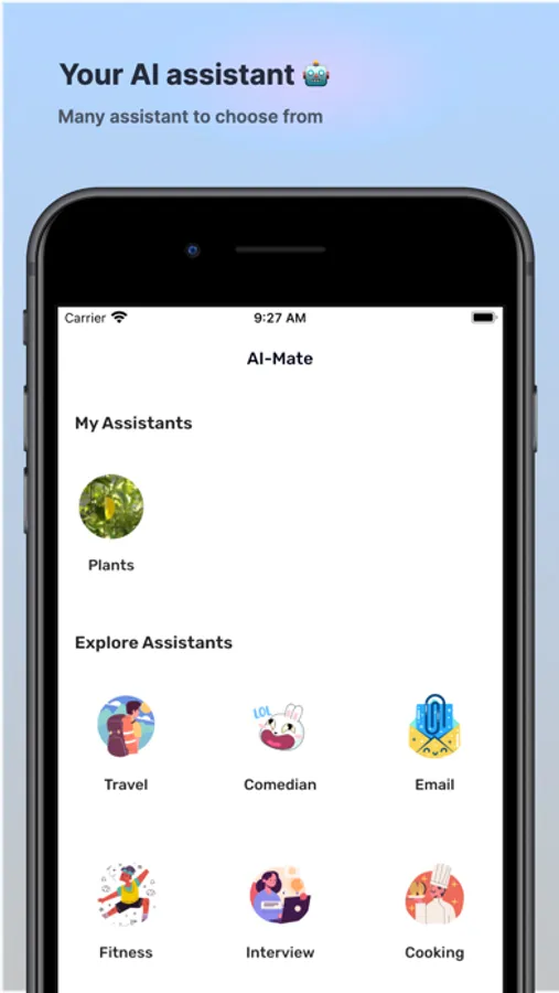 the ultimate multi-assistant app designed to simplify your daily tasks and make your life easier. With AI-mate, you'll have access to a variety of assistants that can help you with anything from managing your schedule to ordering food or booking a ride.