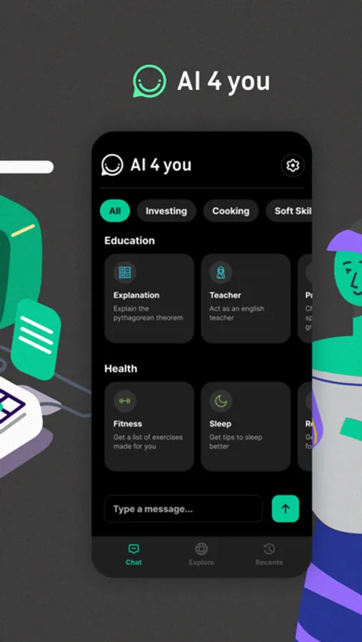 Meet AI 4 You – your personal AI learning assistant. Test your knowledge and explore your curiosity with enjoyable, interactive chats that build intuition and problem-solving skills.